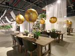 Durch eine Art Vorhang aus Blättern und Zweigen in Creme- und Nudetönen, trockenen Gräsern und Laternen betritt man den Showroom. Der Boden ist mit Sand abgestreut und mit dicken Orientteppichen ausgelegt (Bild 4) - schon beim Betreten taucht man in eine andere Welt und ist mitten im Trendthema der kommenden Frühjahrs- und Sommersaison. "Wir wollen hier im Showroom nicht nur die Bandbreite unserer Produkte zeigen", erklärt Sandro Röhrig, der Juniorgeschäftsführer von DPI. Mit einer aufwendigen Inszenierung durch das hauseigene Floristenteam will man auch Anregungen und Inspiration liefern.