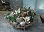 Dunkle Töne und die fast mystische Ruhe des Trendaspekts "Respect nature" vermitteln nicht nur Überschaubarkeit, sondern strahlen zugleich Luxus und Werthaltigkeit aus. Wo Ressourcenschonung erste Priorität genießt, Design aber gleichermaßen den Anspruch bestimmt, finden Naturmaterialien, Blumen und Pflanzen zu objekthaften Werkstücken mit Bio-Anspruch zusammen. Materialien und Oberflächen: Biomaterial prägt das Design, dunkles Metall, geschwärzte Bronze, Drahtgewirke, Naturmaterialien, Outline-Design, Used-Look, Terrazzo, Steinoptik, mattes und glänzendes Porzellan, Lederschnüre, dunkles Glas, Reliefglas, Marmorierungen.