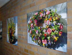 Nach den Osterferien war es endlich so weit! Die Floristen-Oberstufenklasse am Anne-Frank-Berufskolleg in Münster konnte die Leinwände mit Fotos ihrer eigenen Werkstücke im Flur zum Klassenraum dekorieren. Vorausgegangen war ein Praxistag "Trauerfloristik".