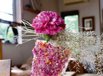In der Coronakrise ist die Wertschätzung für Blumen nicht nur bei den Kunden gestiegen ist. Blumen erscheinen mir kostbarer als zuvor, seit dem letzten Jahr bewahre ich jede einzelne Blume, um sie zu trocknen. Dem Vergleich mit professionellen Trockenblumen aber hält Selbstgetrocknetes nicht stand. So entstand in den langen Tagen der Coronaphase die Idee, getrocknete Blumen zu pulverisieren und in Malmaterial zu verwandeln. Jede Krise bringt auch neue Ideen hervor.