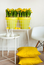 Ob Tuplen, Narzissen, Ranunkeln, Hyazinthen oder Muscari - als Strauß in der Vase oder im Topf schmücken die Zwiebelpflanzen das österliche Interieur. In unserer Bildergalerie mit den Bildern von Ibulb zeigen wir österliche Floristik - mit und ohne Zwiebel. Die Farbe Gelb dominiert, etwas ruhiger wirken weiße Blumen mit schwarz-weißen Accessoires und grafischen Mustern.