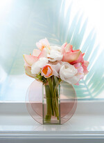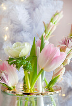 Das wichtigste Ziel beim Styling lautet ‚Reize vermeiden‘. Stellen Sie Blumen in halb transparente und matte Vasen, welche die Zartheit der Blumen in hellen Pastelltönen unterstreichen. Es ist als ob man die Realität durch einen Filter betrachtet. Verwenden Sie Blumen mit ruhiger, zarter und beruhigender Ausstrahlung. Abstrakte Vasen sorgen für einen persönlichen Touch.
